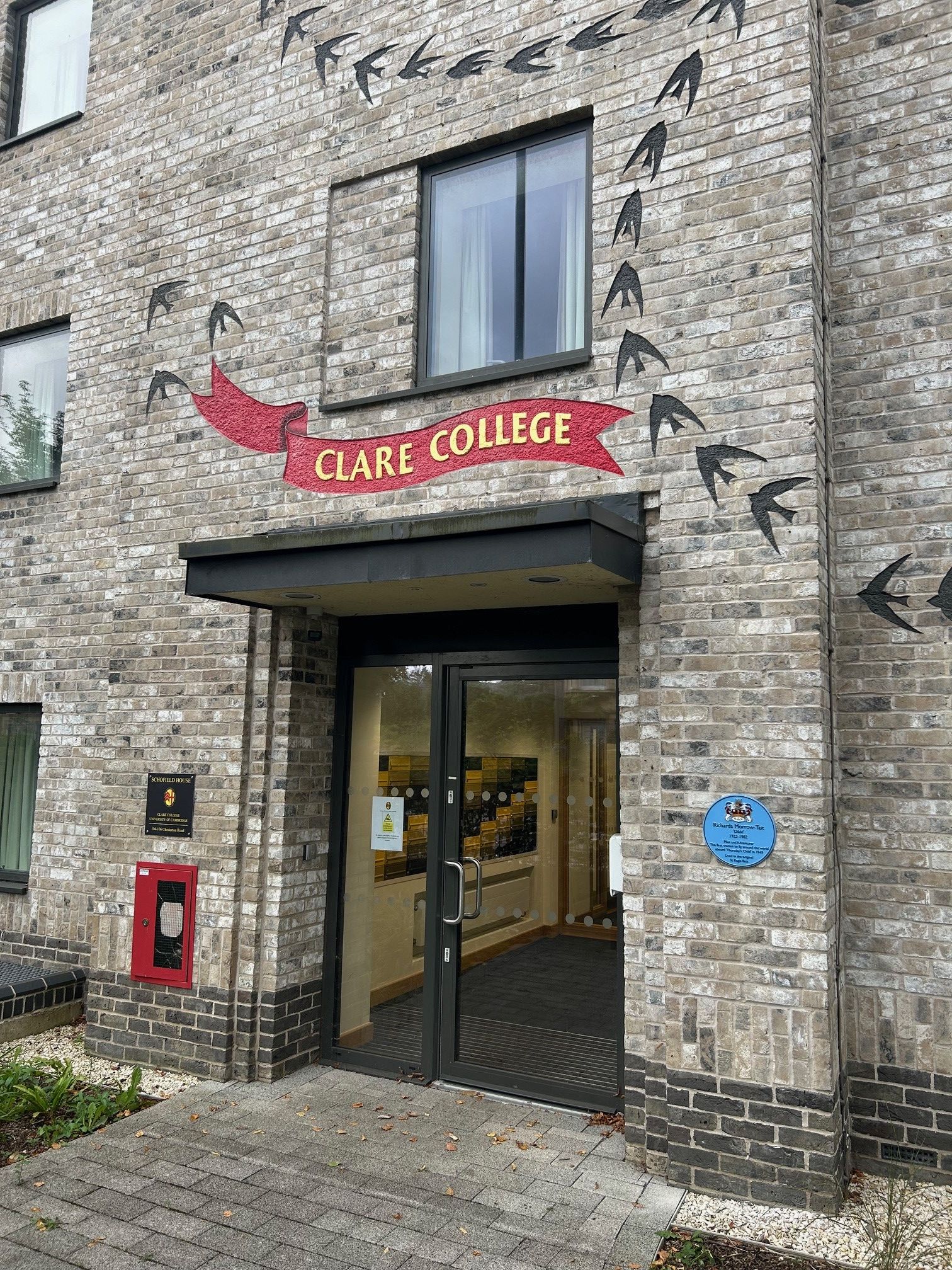 The St Regis site on Chesterton Road has been providing graduate accommodation for Clare’s students for over fifty years. The original late- 1930s site was acquired by the College in the 1960s and underwent a complete rebuild in 2018. The blue plaque has been installed on the front façade of the block facing Chesterton Road. Above are carvings of swifts, inspired by the birds that nested in the original St Regis buildings.