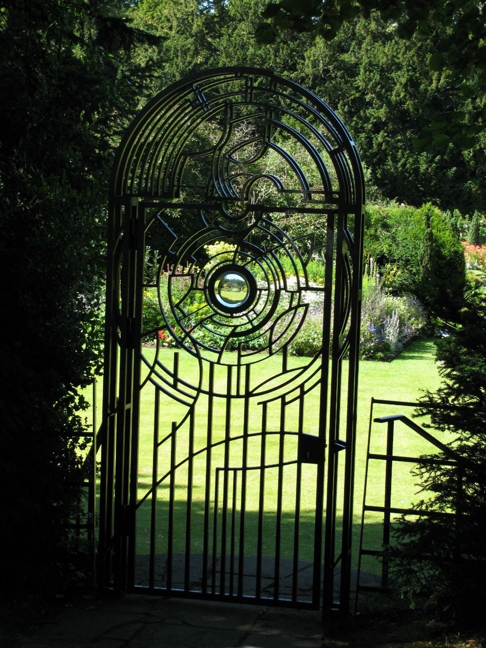The “lens gate” was designed by Wendy Ramshaw, funded in part by a bequest in Nevill Willmer’s will and was installed in November 2008.