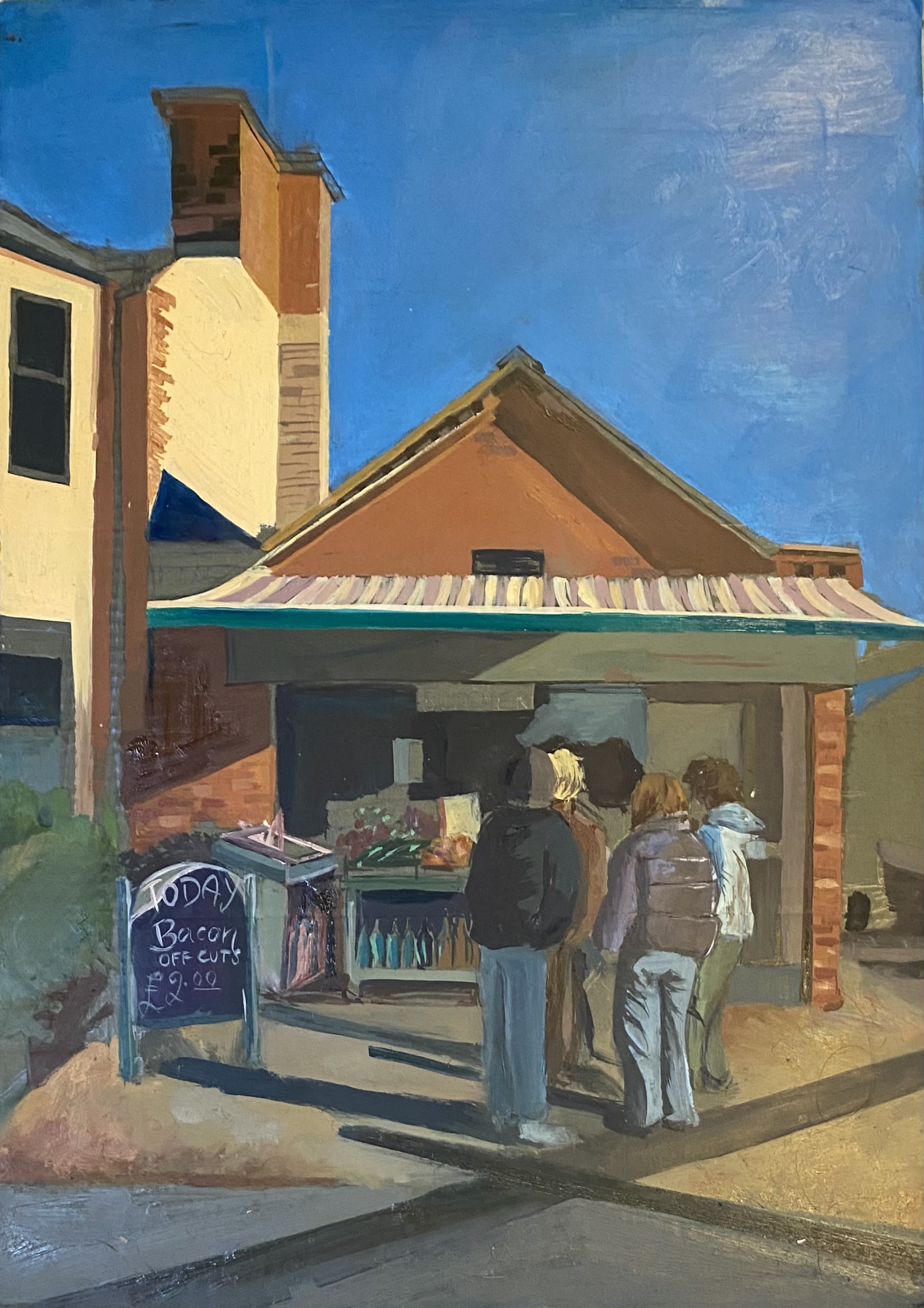 This piece is based on a photograph taken during a walk to Grantchester at the beginning of December with a group of friends, both to explore and escape. It aims to capture the late afternoon winter light, and the feeling of calling a new place – and new people – home.