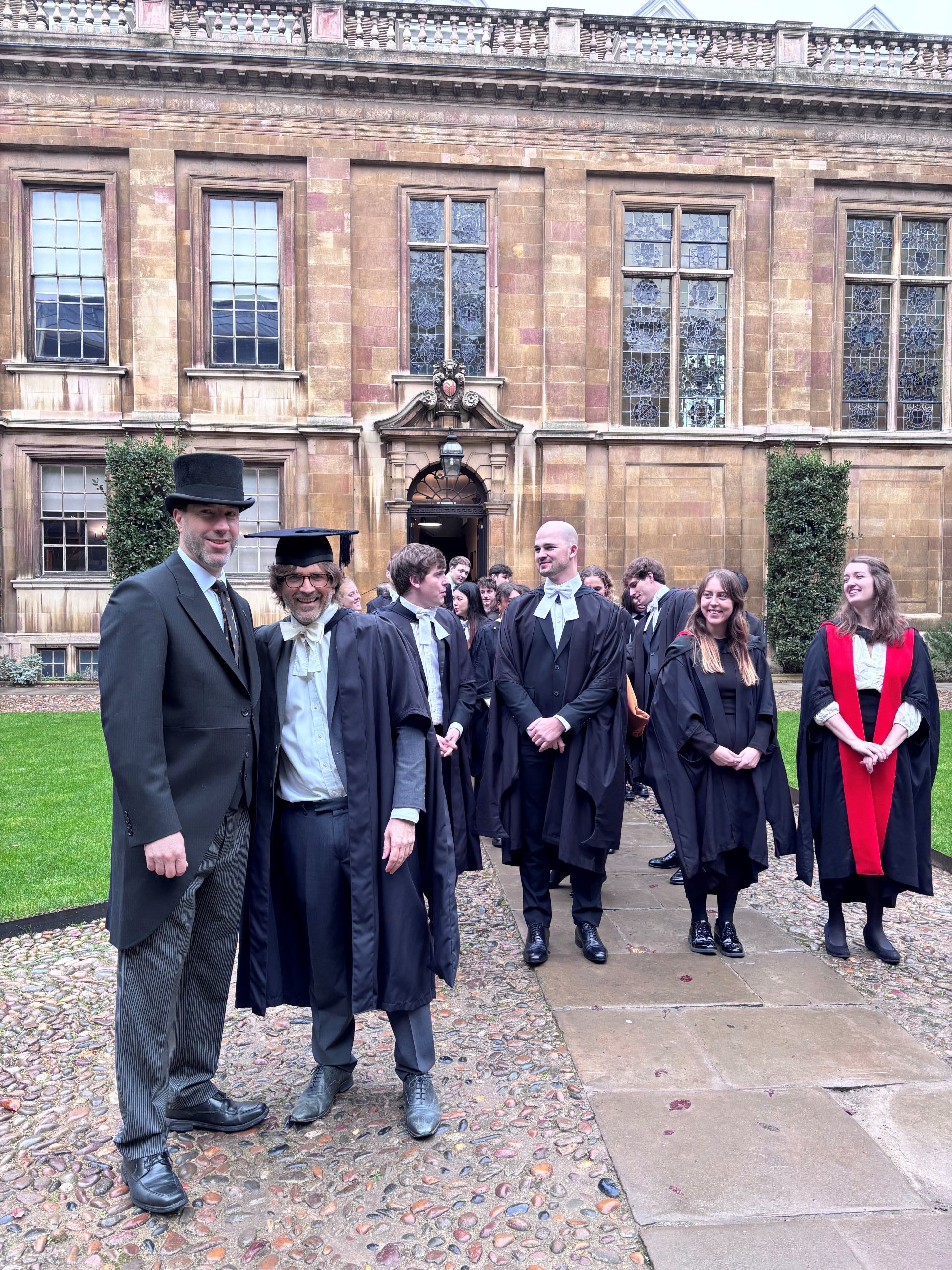 Naturally all of this does not hamper my ability to cope with my other Clare job, but when I started to serve as the Praelector almost fifteen years ago I was so nervous and discombobulated by the choreography of the ceremony that – as many tiros do – I typed up the Latin and taped it to the interior of my mortarboard. I soon began to internalize the lovely old formulae and joined the happy band of experienced Praelectors who revel in the errors of others. I thought I had seen and heard everything until recently when (absit omen) I witnessed a fellow Praelector fall over when attempting to prevent a student from falling over! But the real fun of the job is meeting the proud families who come from all over the world and seeing first-hand the less visible threads that bind the College.