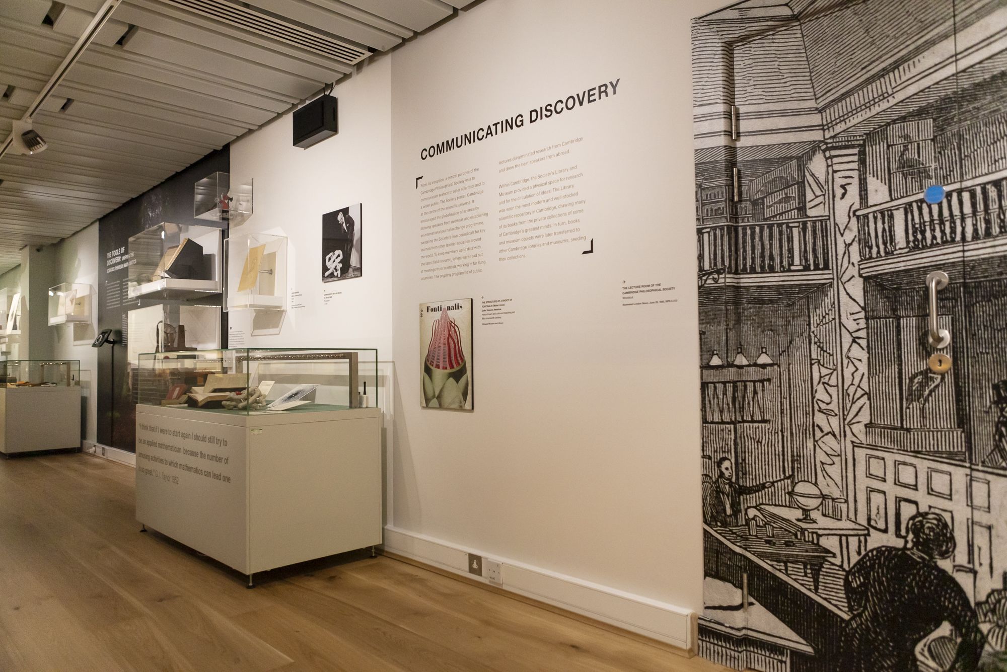 The exhibition explored and celebrated the fact that, from its earliest days, the Philosophical Society encouraged the use of quantitative methods and mathematics in the sciences. Newton’s legacy in Cambridge had not been forgotten, and at the time, all graduates of the University were mathematically trained in the elements of Newton’s work. One theme which illustrates the success of this method through the years relates to the phenomenon of ‘wave diffraction’: the wave nature of sound waves, light waves, x-rays and radio waves means that all these apparently disparate topics are in fact closely related. All these subjects have a Cambridge connection.