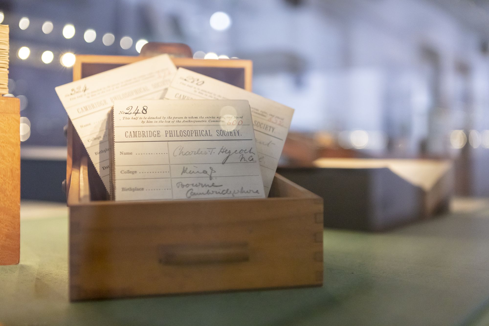 The life sciences lagged behind the physical sciences in the use of quantitative and mathematical methods. However, an important early project in this area was in fact run by the Philosophical Society. ‘Anthropometrics’ – the measurement of man – attempted to apply the empirical tools used to survey the natural world to humankind. It involved the systematic measurement of the physical properties of the human body. In 1886 the Cambridge Anthropometric Committee began recording anthropometric data for University students, a project which ran for two decades and produced over 9,000 personalised cards, some of which formed one of the exhibition’s striking displays.
